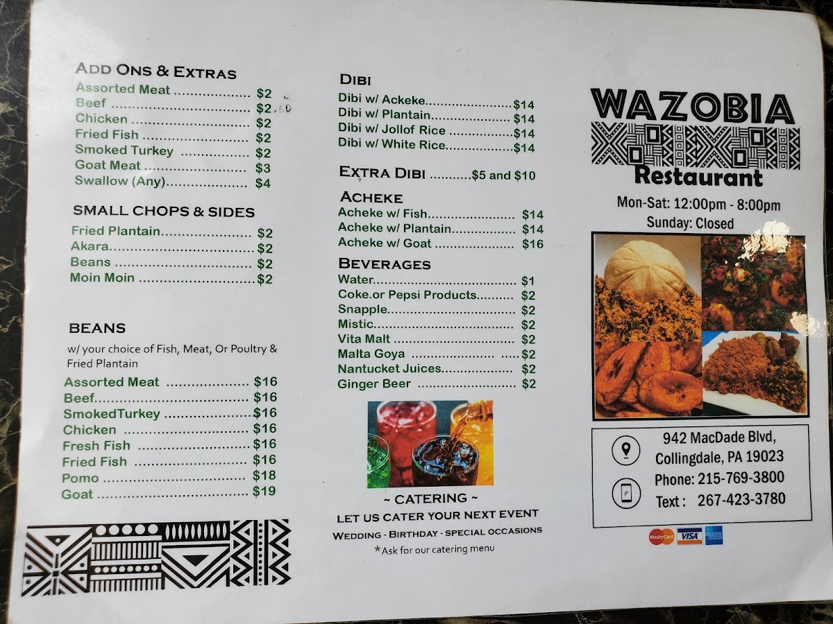 Welcome to Wazobia Nigerian Restaurant, your gateway to authentic Nigerian cuisine located in Collingdale, PA. As you step inside, prepare to be captivated by a vibrant menu that showcases the richness of Nigerian flavors.